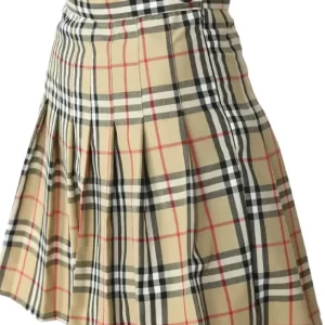 Women’s Pleated Tennis Skirt with Side Button & Zip Closure – Built-In Shorts for Active & Casual Wear-Beige Check