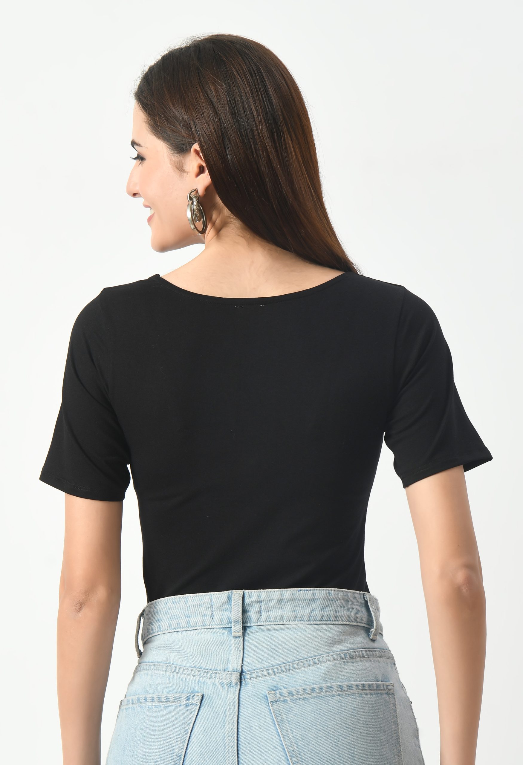 KLART Women’s Cotton Lycra Half Sleeves Round Neck Bodysuit Top
