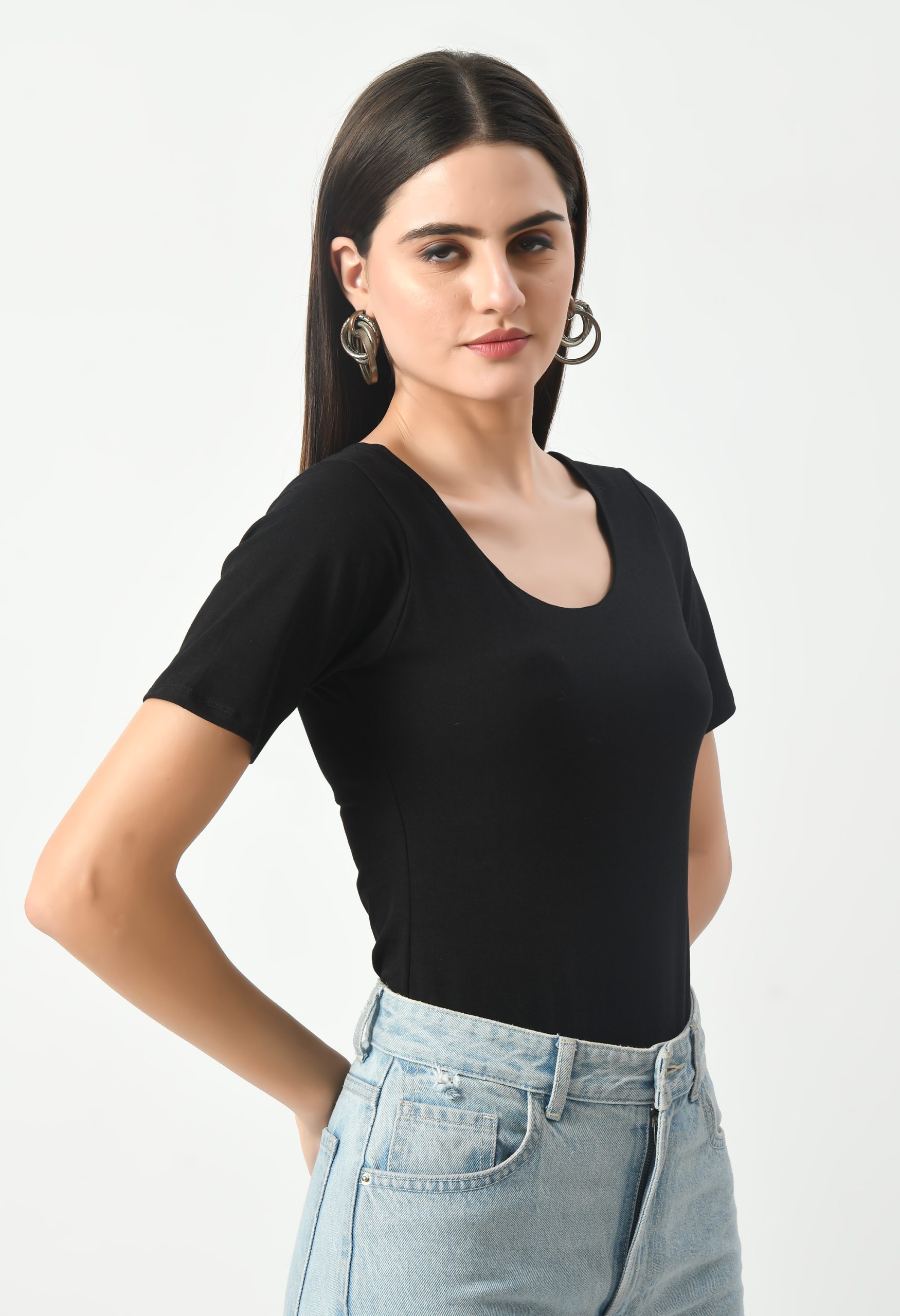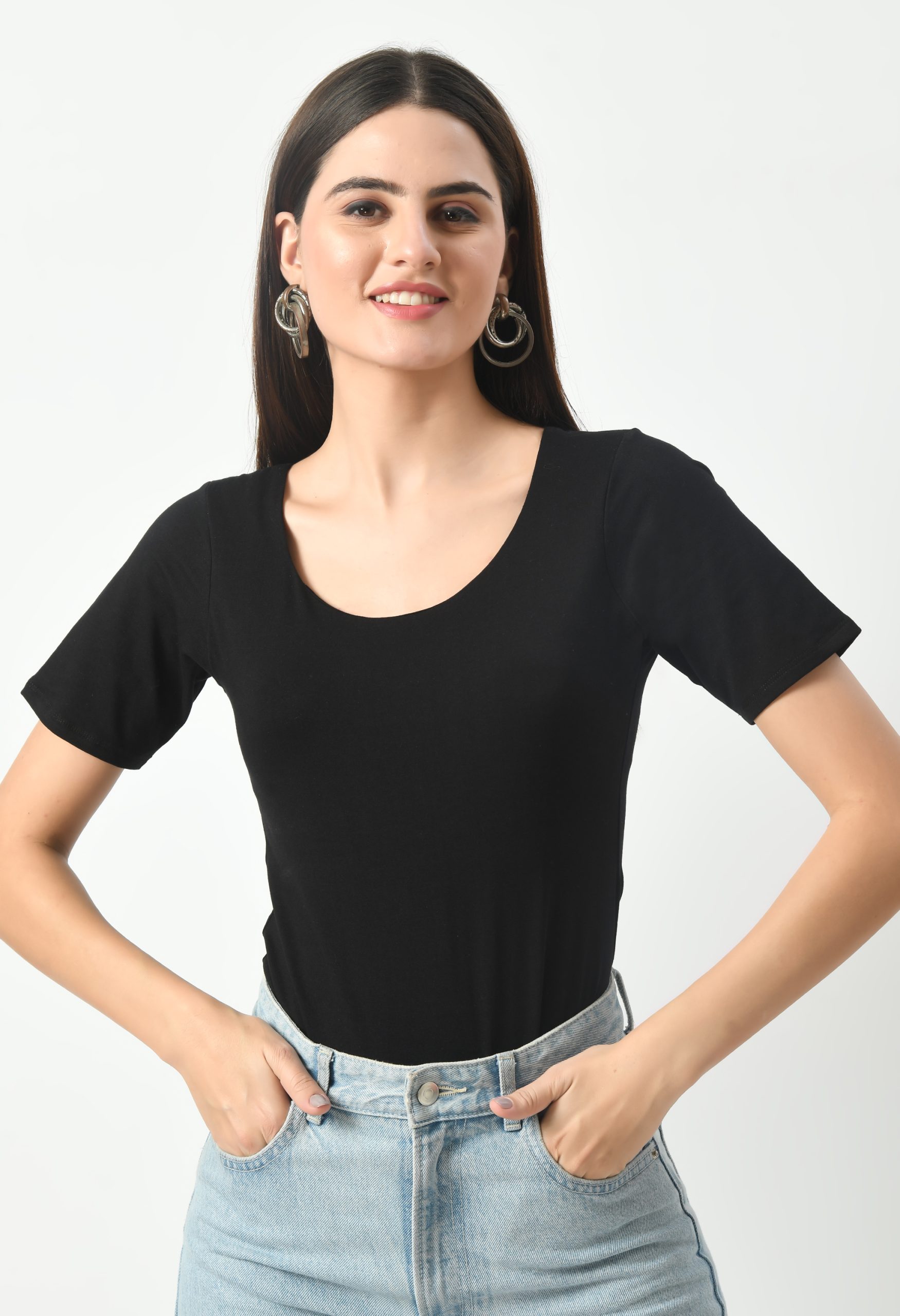 Elevate your wardrobe with the KLART Women’s Cotton Lycra Half Sleeves Round Neck Bodysuit Top, a versatile and essential piece for every woman’s closet. Crafted from a premium blend of cotton (90%) and spandex (10%), our bodysuit top offers the perfect combination of comfort, stretch, and durability. With its classic round neck and half sleeves design, our bodysuit top exudes timeless elegance and versatility, making it a staple piece for any outfit. The flattering fit hugs your curves and provides a sleek silhouette, accentuating your figure while ensuring maximum comfort. The breathable cotton-lycra blend fabric offers superior breathability and moisture-wicking properties, keeping you cool and comfortable all day long. Plus, with a convenient snap-button closure at the crotch, our bodysuit top is easy to put on and take off, offering hassle-free wearability. Whether worn on its own or layered under jackets, cardigans, or sheer tops, our bodysuit top is a versatile wardrobe essential suitable for any occasion. Trust in the KLART brand for high-quality clothing that combines fashion-forward designs with premium materials for enduring wear.