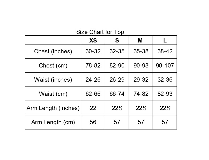 | XS | 32-34 | 22 | 5 | 15 |