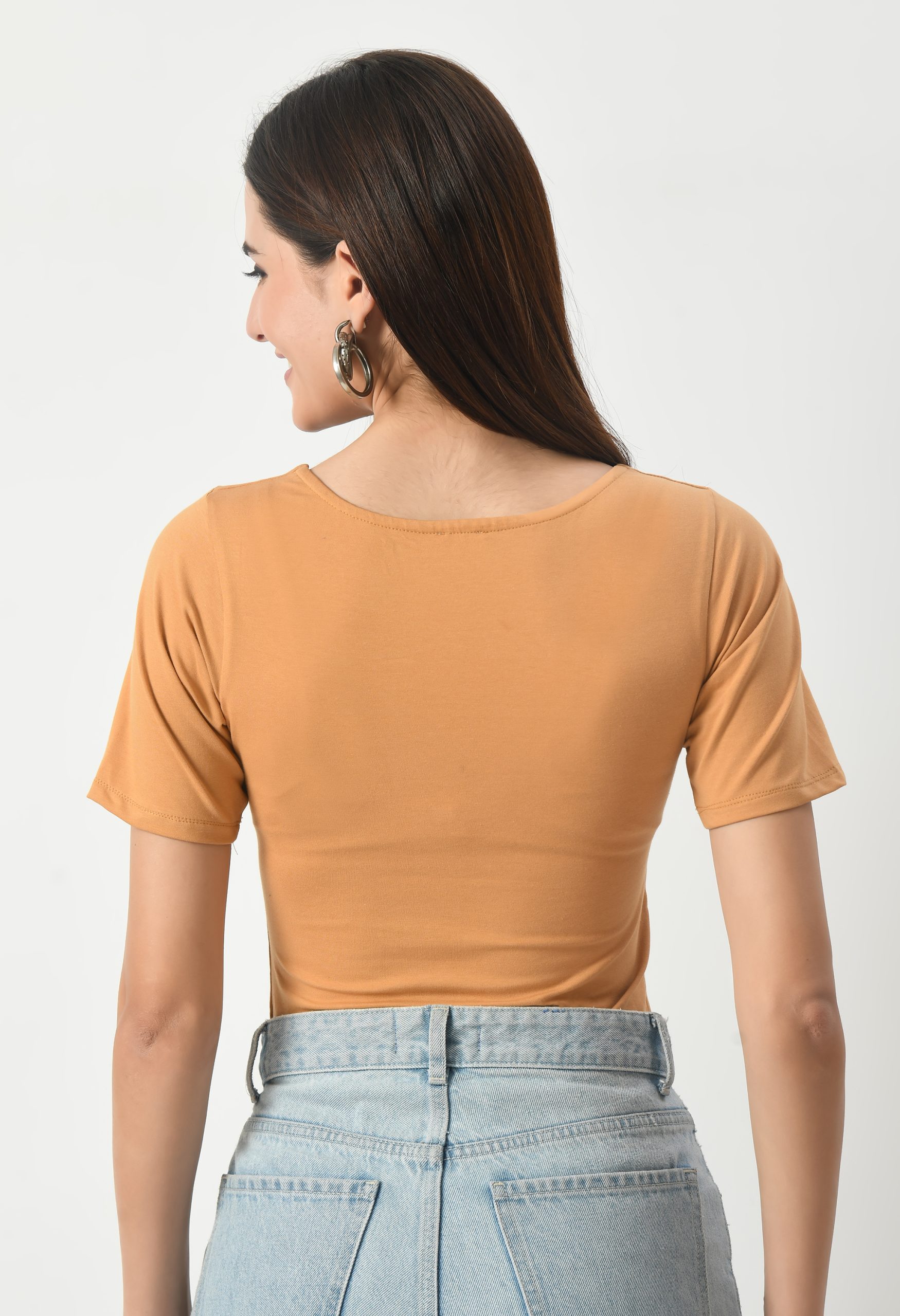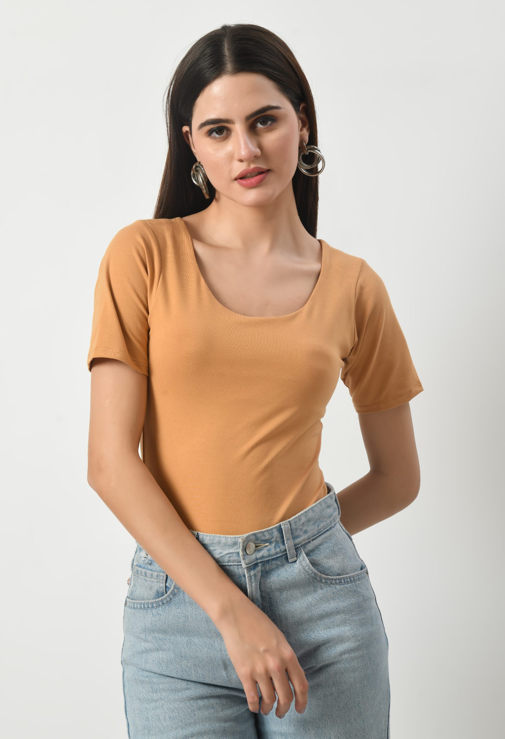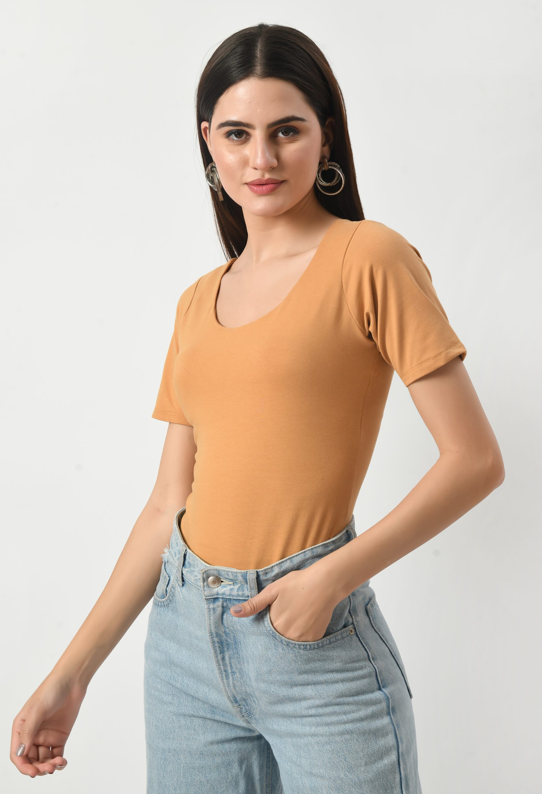 KLART Women’s Cotton Lycra Half Sleeves Round Neck Bodysuit Top