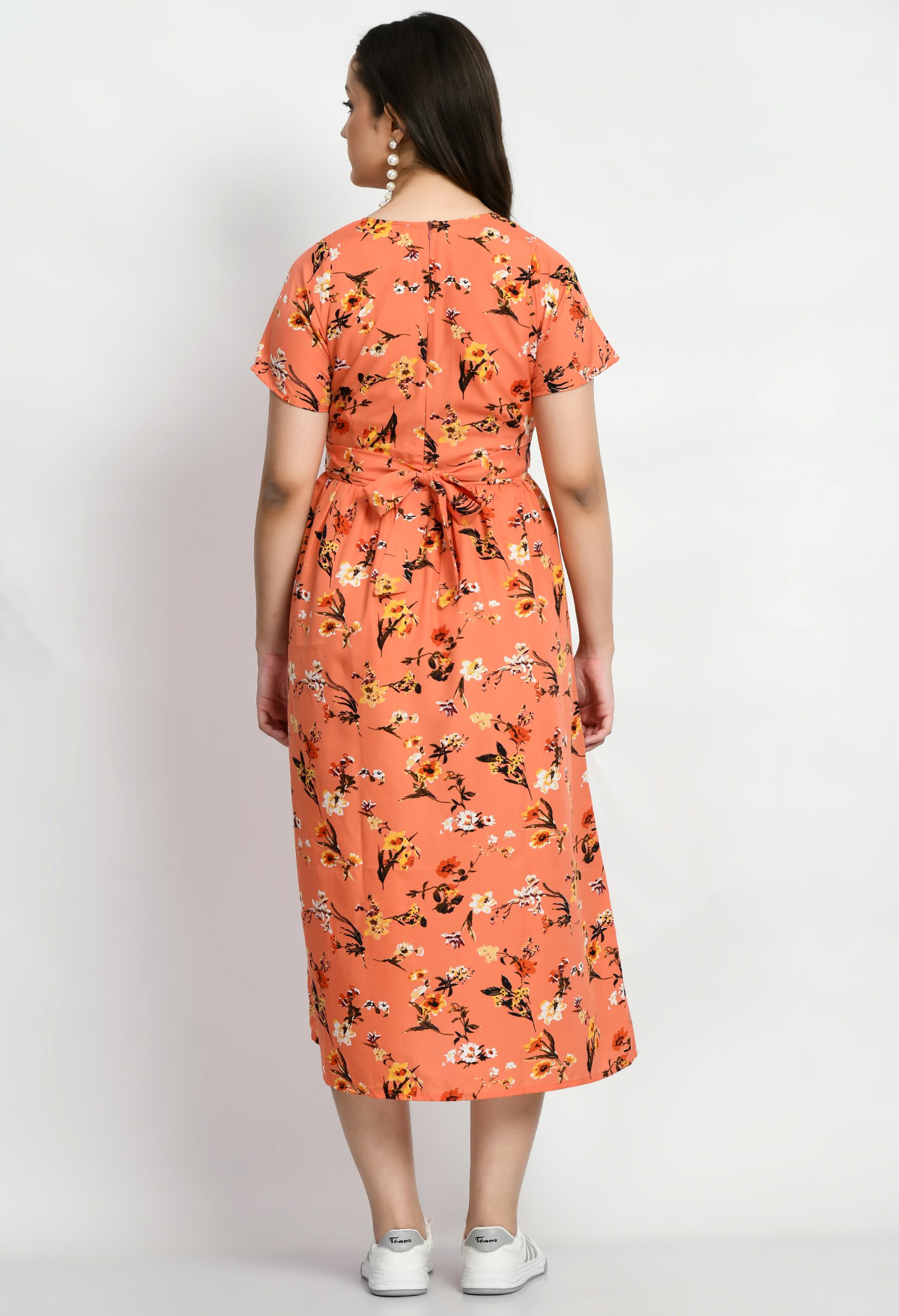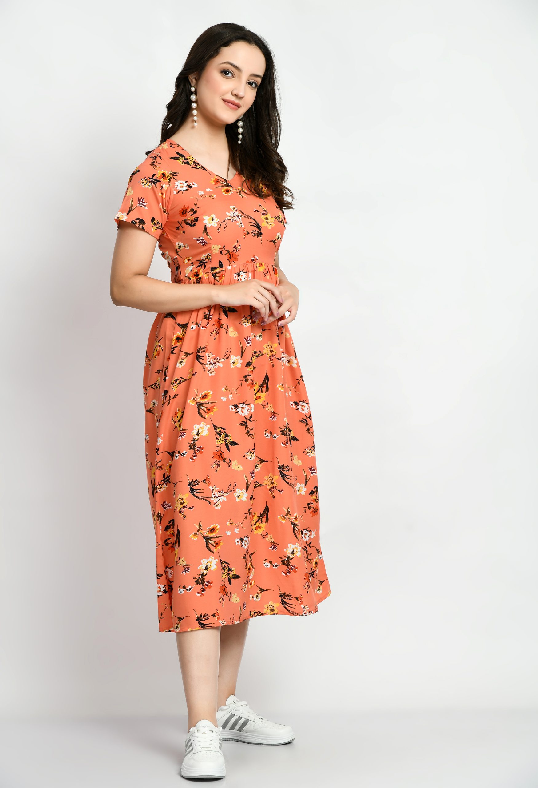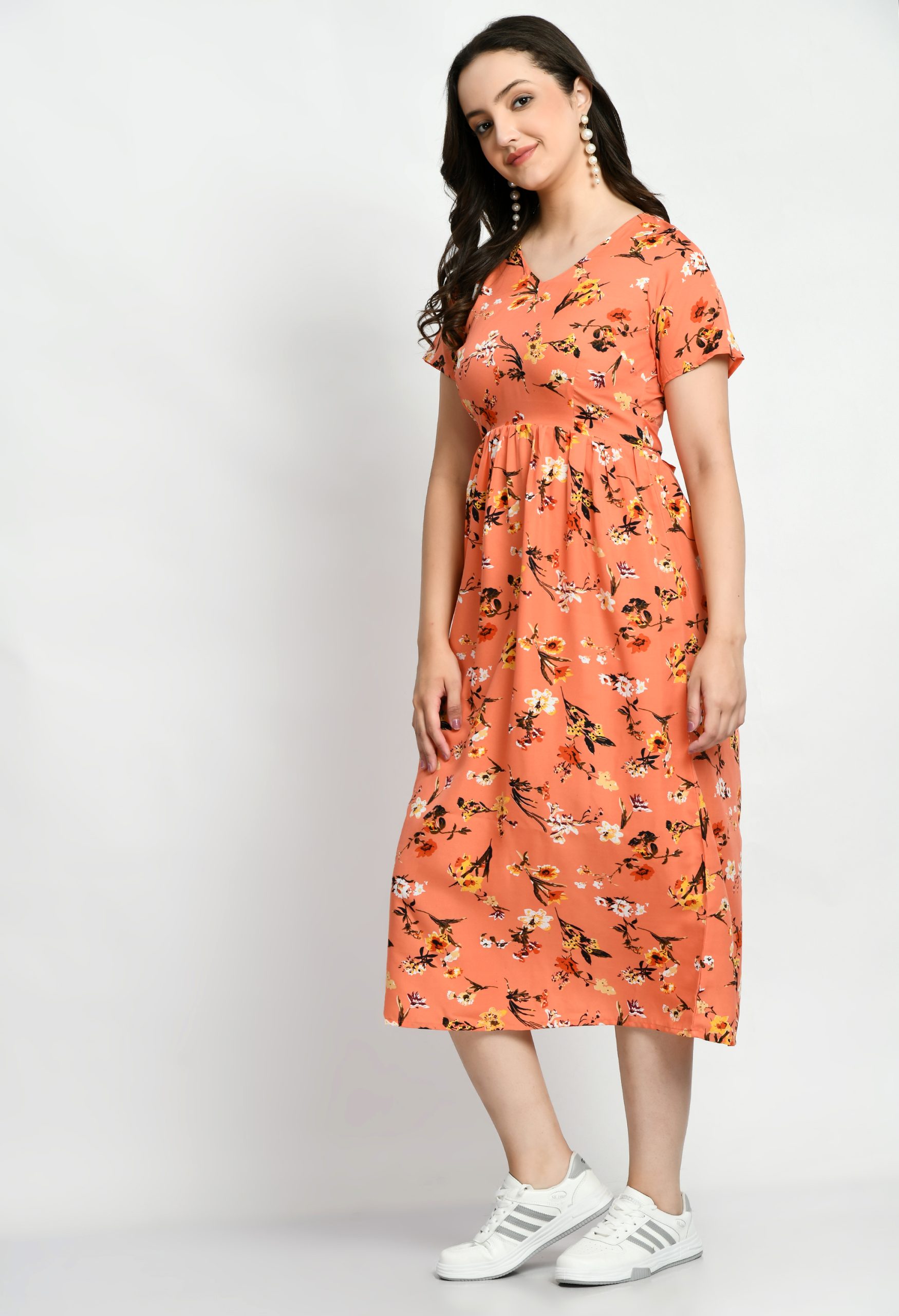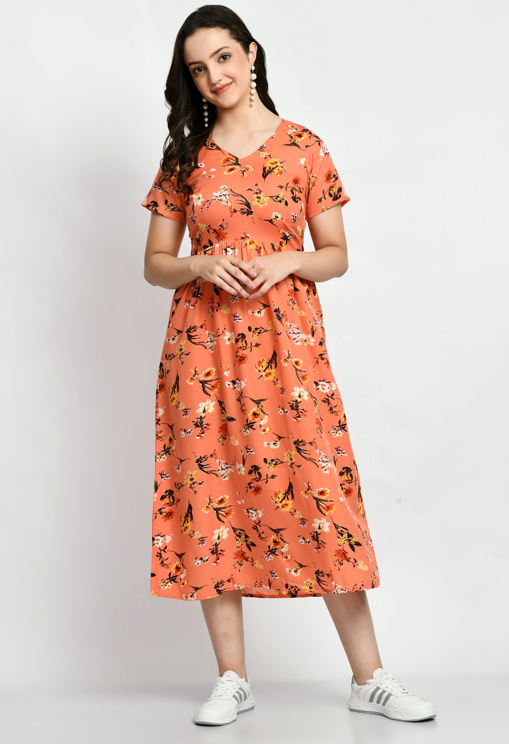 Introducing our stunning frock dress, perfect for any occasion! This dress features a flattering A-line silhouette and a beautiful floral print, adding a touch of elegance to your look. The luxurious fabric drapes beautifully over your body, creating a feminine and flirty style. A classic V-neckline and short sleeves provide a comfortable and stylish fit. Whether you're attending a wedding, party or just strolling through the city, this dress will make you feel confident and chic. Order now and add a touch of glamour to your wardrobe!