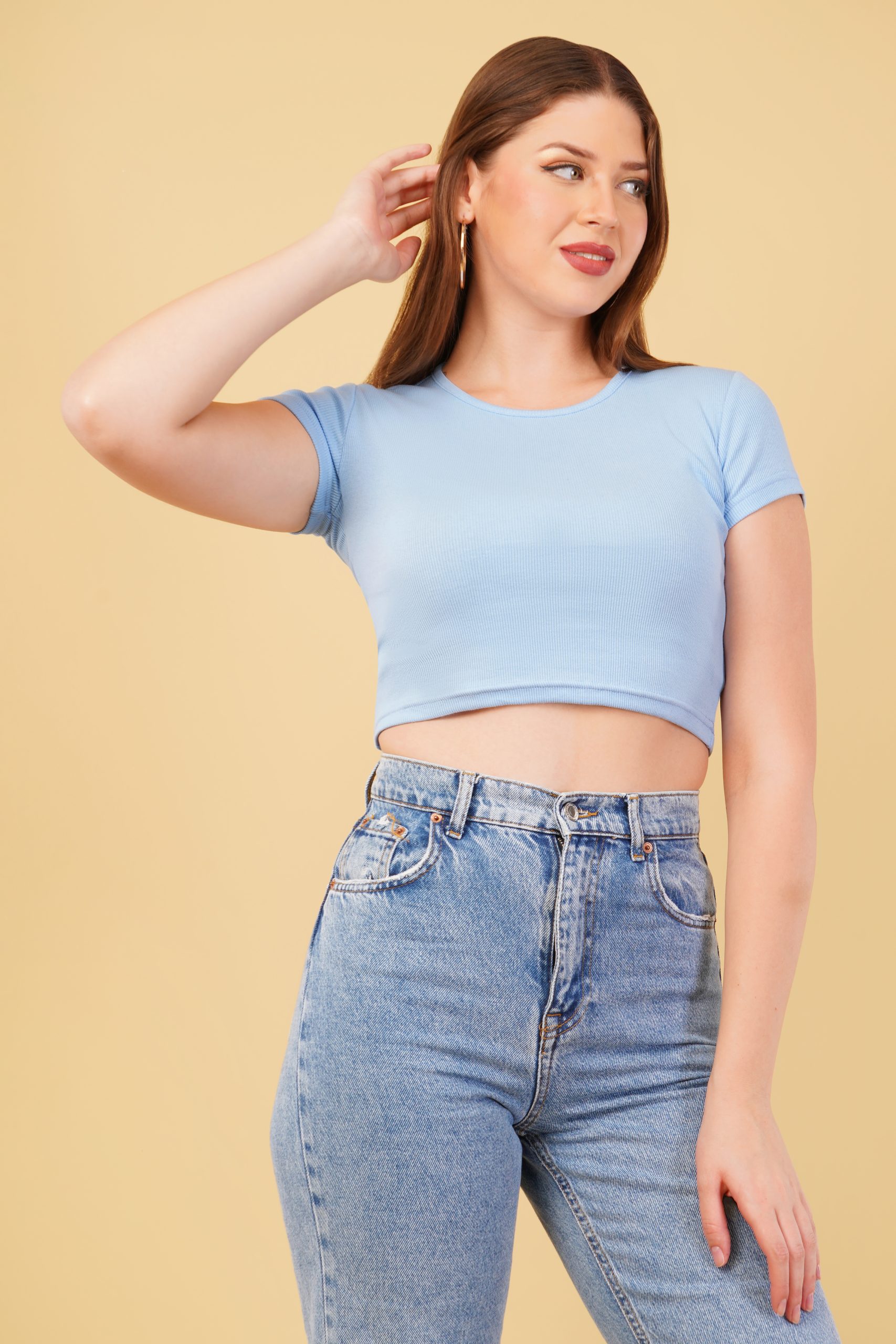 Ribbed Round Neck Fitted Crop Top – Sky Blue