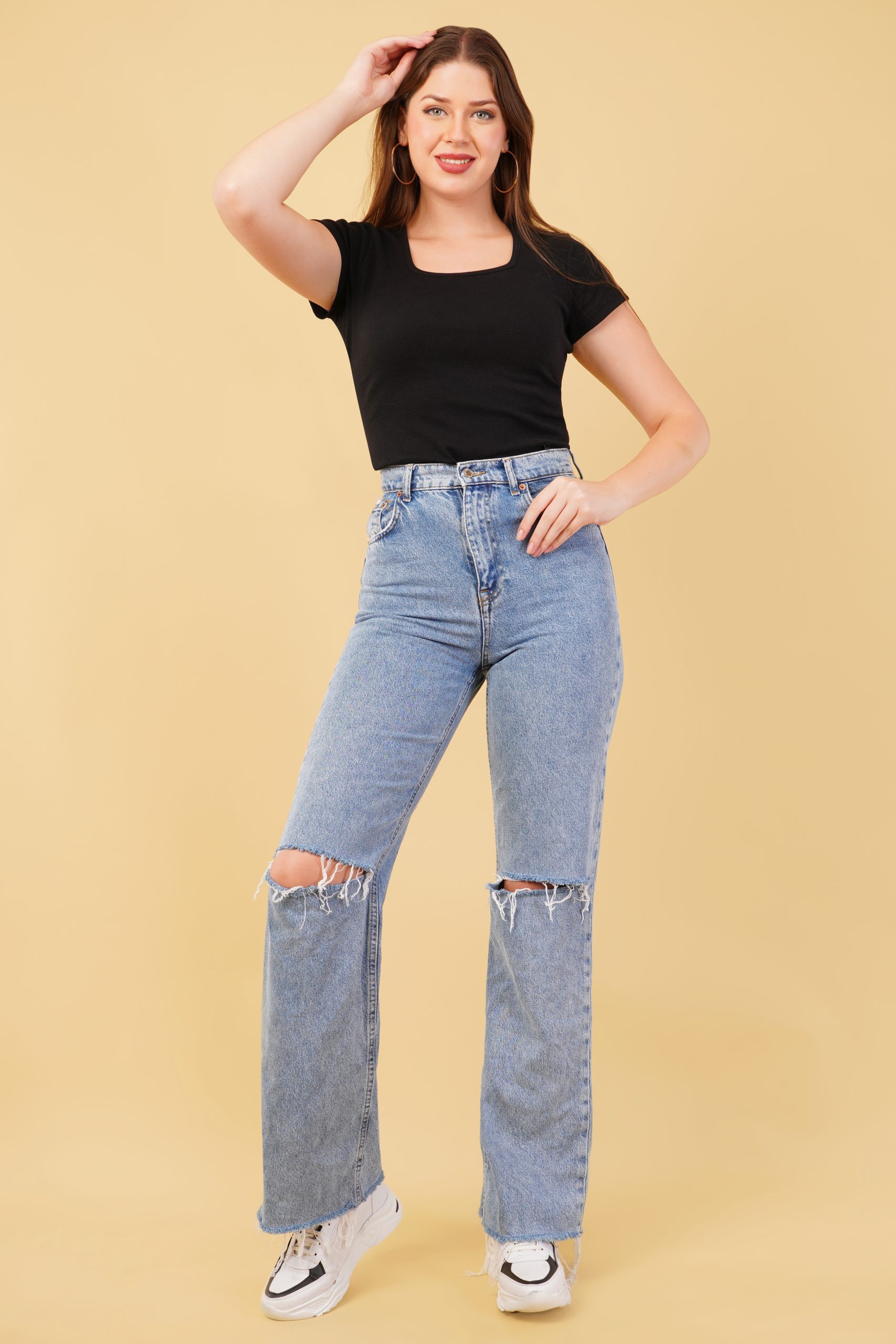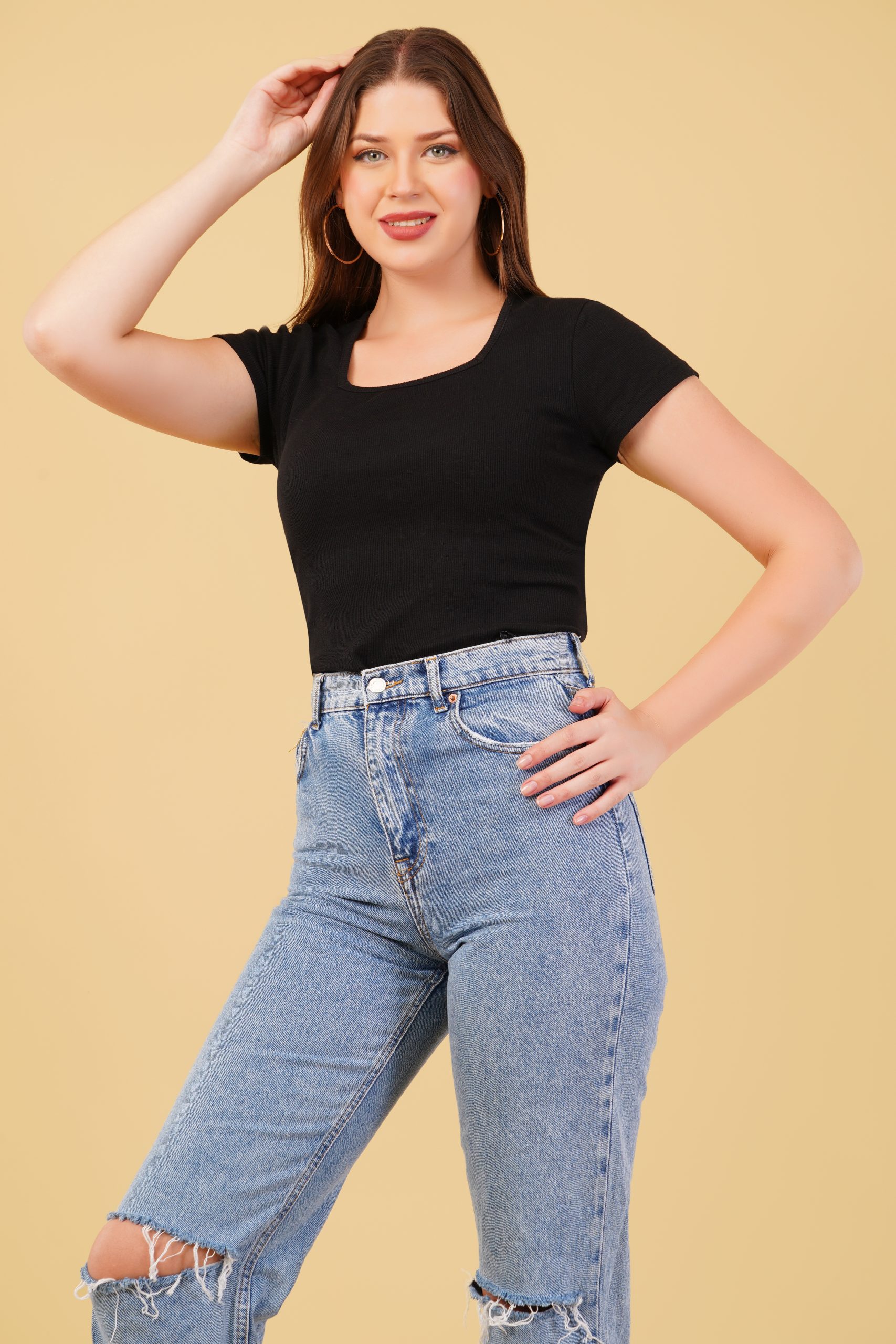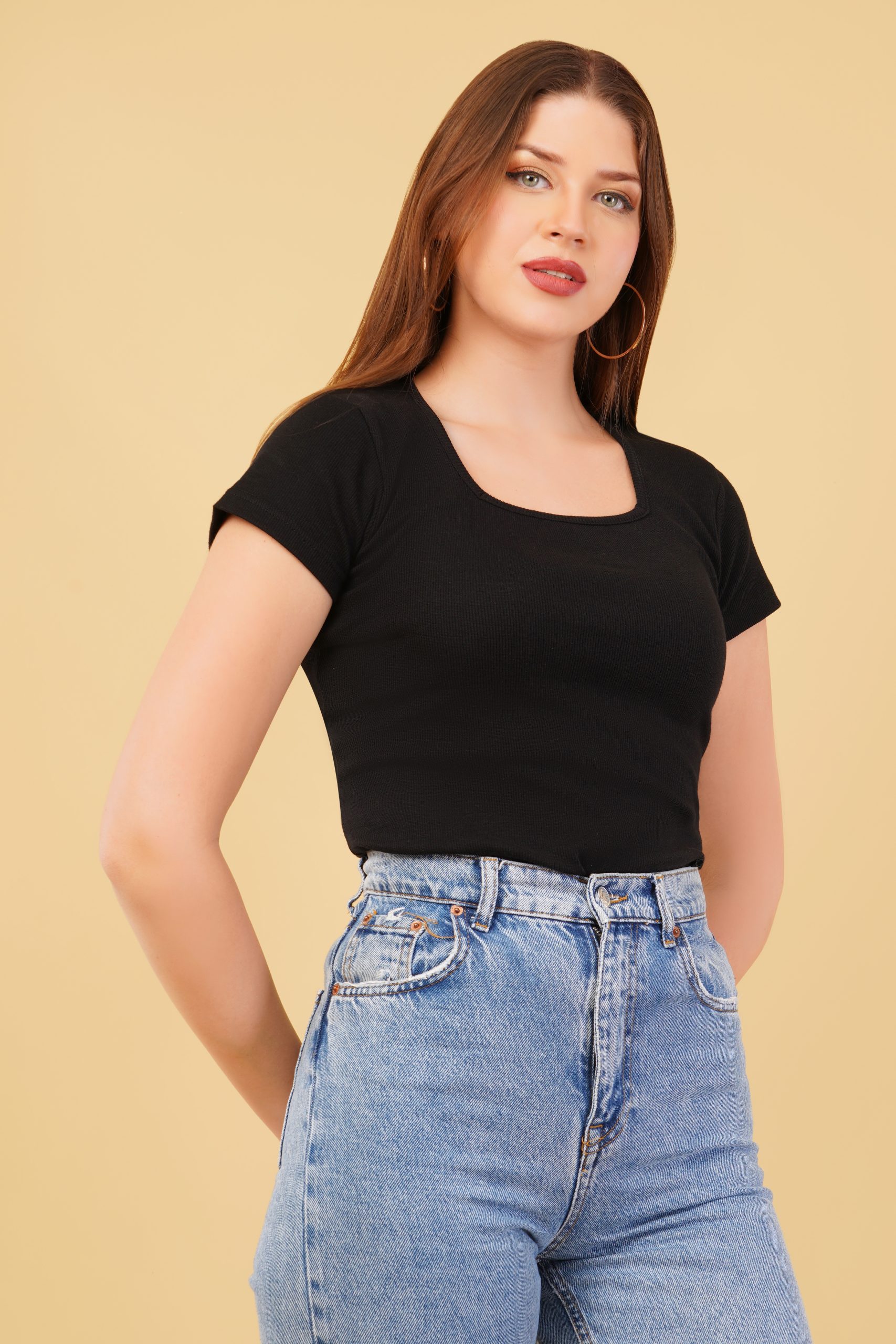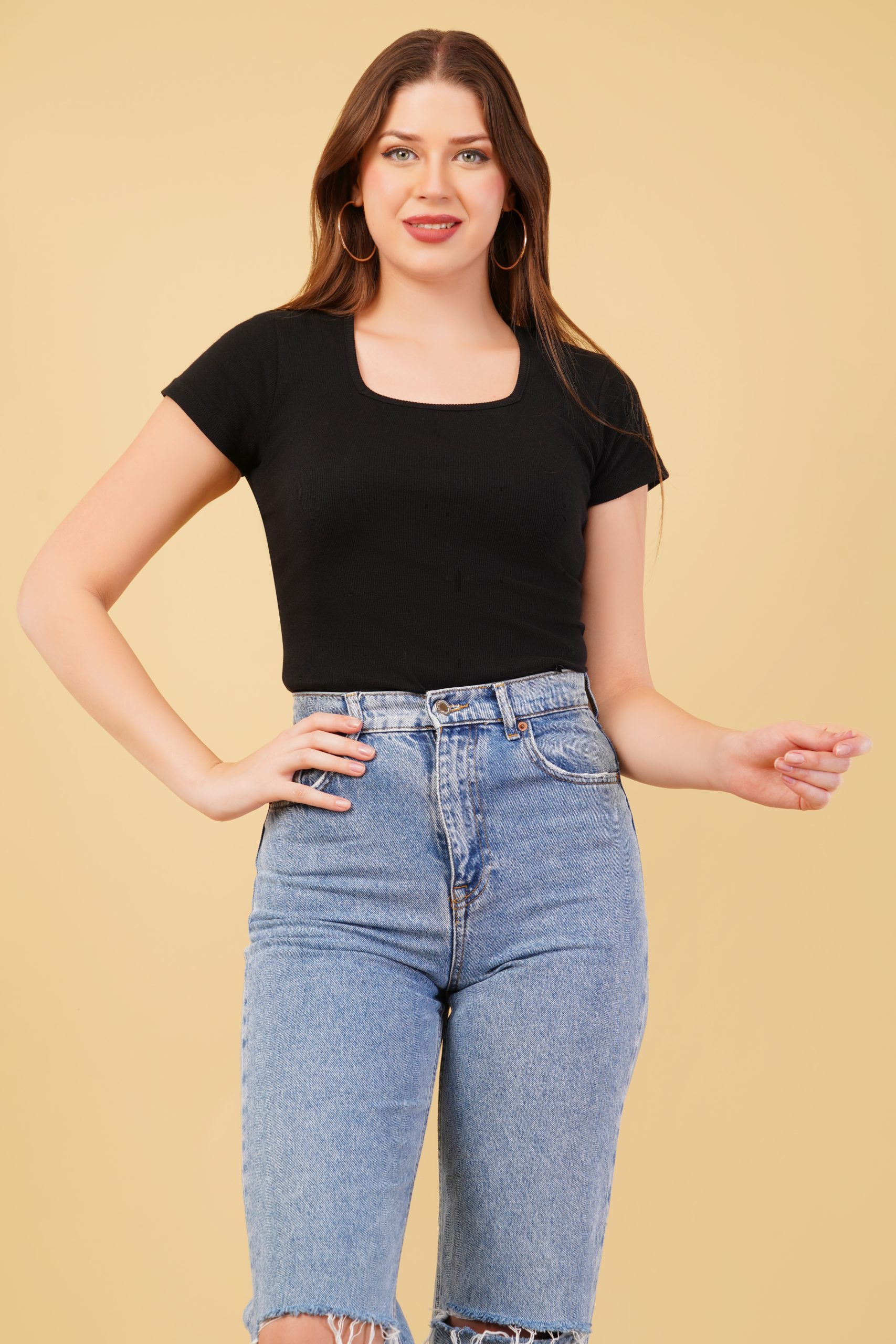 A perfect blend of elegance and comfort! This Ribbed Square Neck Fitted Long Top for women features a sculpting fit that flatters your shape. Made from soft, stretchy cotton lycra fabric, it’s ideal for both casual and dressy looks.