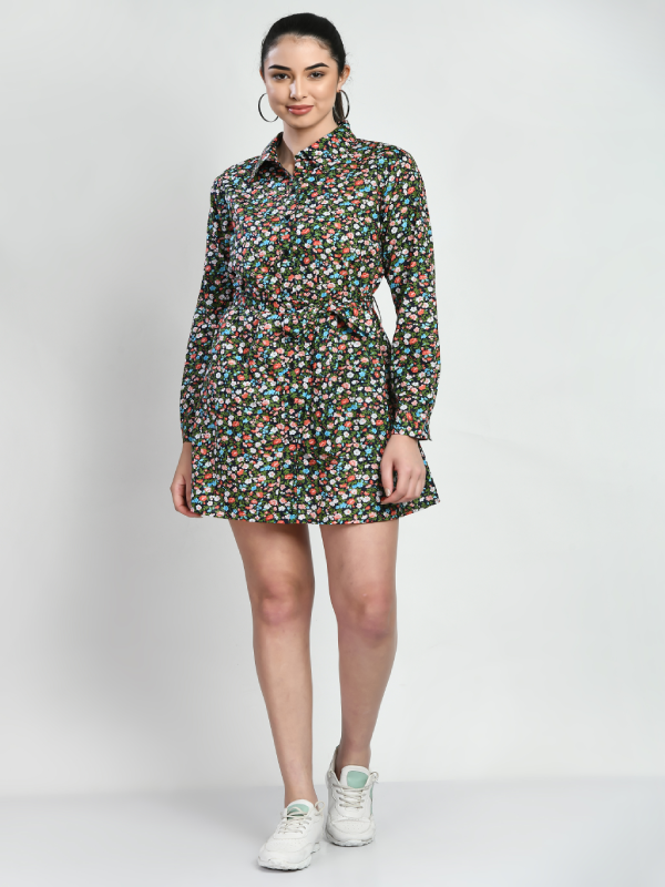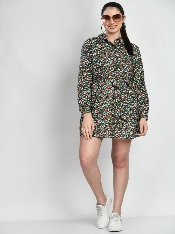 HomeWomenShirt Dress Shirt Dress (Black Floral)
