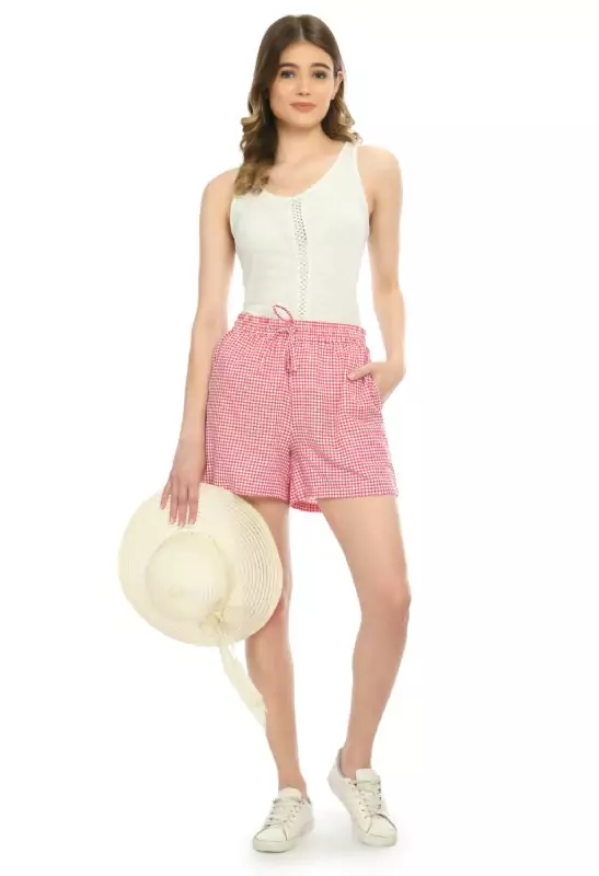 Be the first to review “Cotton Checked Lounge Shorts for Women – Soft Breathable Fabric, 2 Side Pockets, Adjustable Drawstring Waist – Casual & Comfy Loungewear (Pink)” Cancel reply
