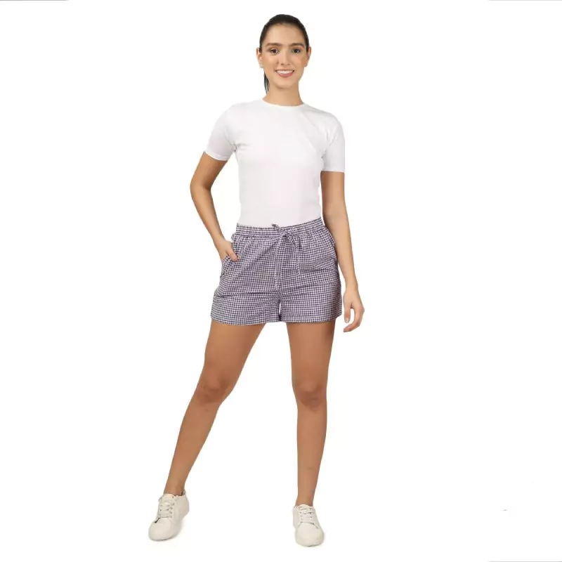 Elevate your everyday comfort with our women’s cotton checked lounge shorts, designed for effortless style and all-day wear. Made from soft, breathable 100% cotton fabric, these shorts are perfect for lounging at home, casual outings, or running errands. The classic checked pattern adds a touch of timeless charm, while the adjustable drawstring waist ensures a perfect fit every time.