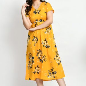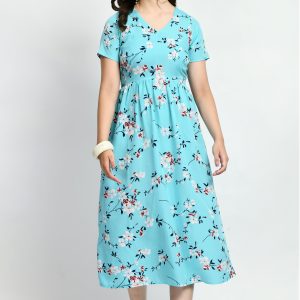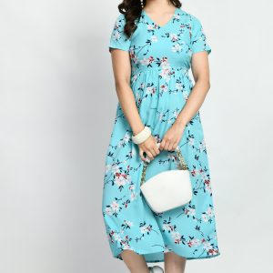 Introducing our stunning frock dress, perfect for any occasion! This dress features a flattering A-line silhouette and a beautiful floral print, adding a touch of elegance to your look. The luxurious fabric drapes beautifully over your body, creating a feminine and flirty style. A classic V-neckline and short sleeves provide a comfortable and stylish fit. Whether you're attending a wedding, party or just strolling through the city, this dress will make you feel confident and chic. Order now and add a touch of glamour to your wardrobe!